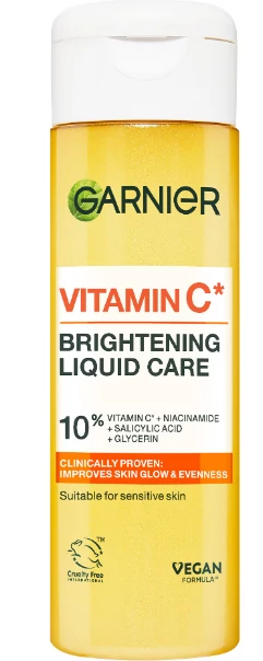 „10% [C-VITAMIN*] és [GLICERIN + NIACINAMID + SZALICILSÁR] tartalmú, gazdagított formula ragyogó, világosabb bőrért és intenzív hidratálásért.